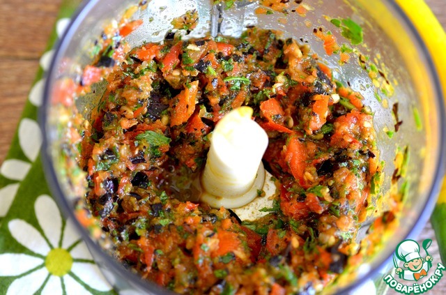 В блендере соединить всю зелень, помидоры, болгарский перец, чеснок.