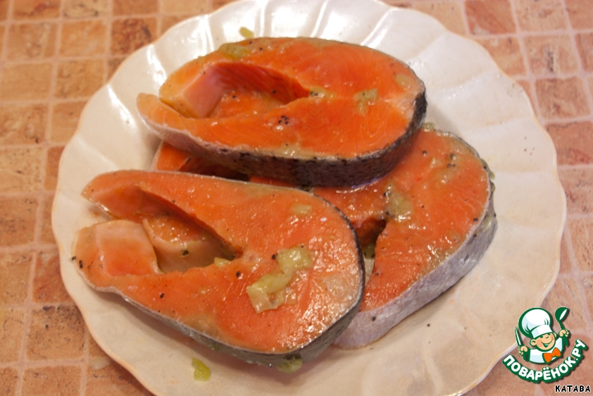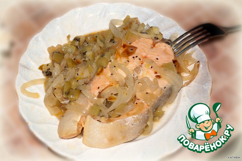 | Увидела рецепт в одной книге, решила приготовить. Теперь это оди из самых любимых рецептов с красной рыбой. Получается, ну очень нежно и вкусно. А какой получается лук на гарнир! Прям гармония вкуса. Его едят даже те, кто лук не любит вообще в принципе. В частности, моя подруга, которая лук ни ест ни в каком виде, этот уплетала за обе щеки, сама себе не веря) |