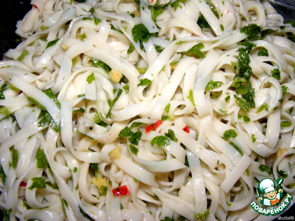 | Больше всего в этом блюде меня впечатлила лапша с соусом из кинзы, имбиря и чили! В меру острая, с кислинкой от сока лимона! |