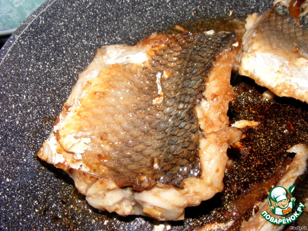 Обжариваем с двух сторон кусочки рыбы до румяной корочки.