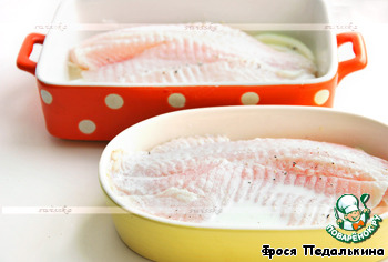 Я готовила в двух небольших формочках, их удобнее подавать к столу. Если используете одну большую форму, уложите рыбу поплотнее. Смазывать форму маслом не надо.
