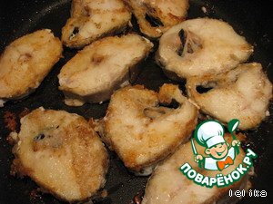 Нарезанную на порционные кусочки рыбу запанировать в муке и обжарить на растительном масле до золотистой корочки с обеих сторон.