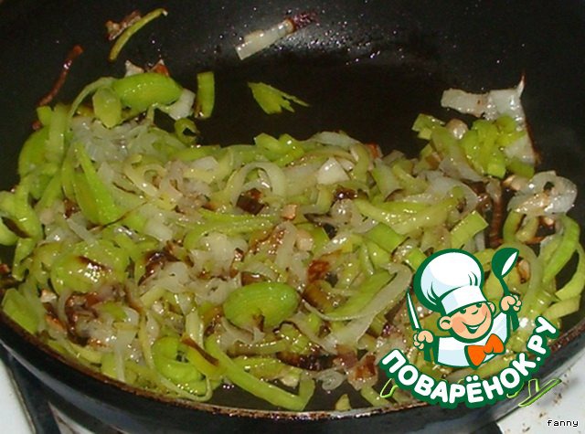 Лук-порей (в оригинале фенхель, но не люблю его из-за резкого запаха) нарезать тонкой соломкой.