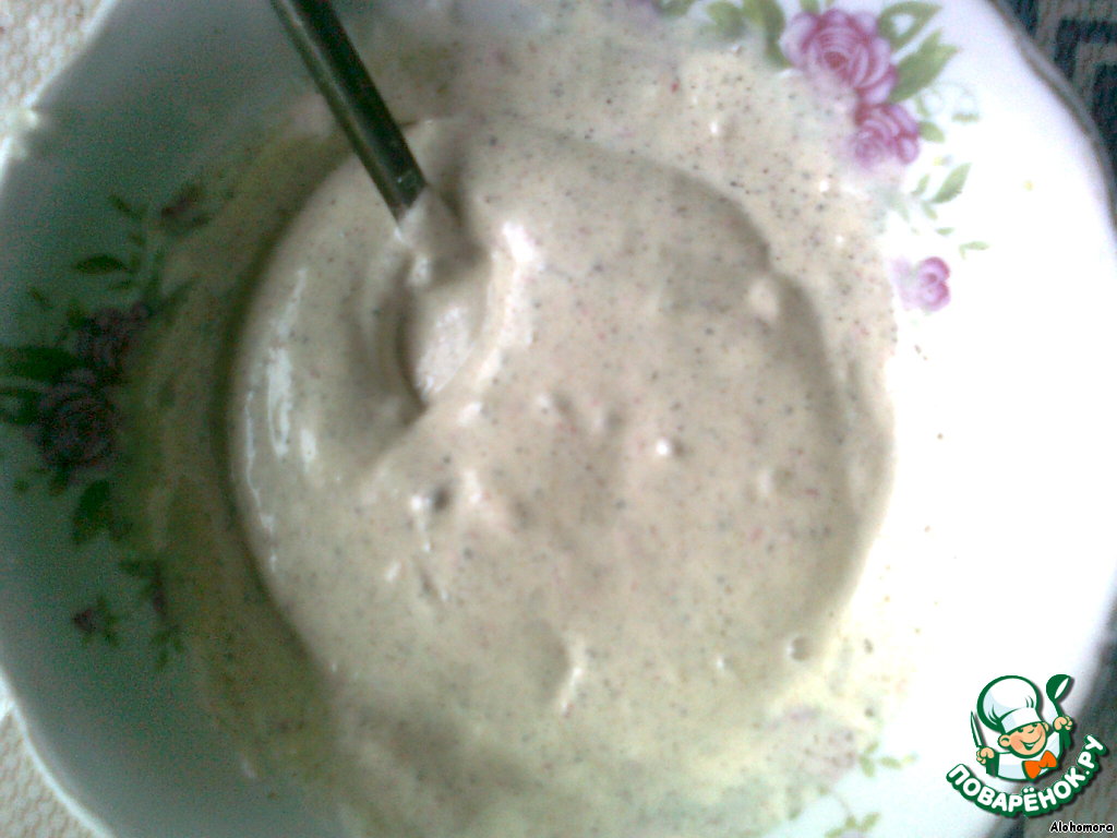 Для соуса нужно смешать сметану, горчицу, лимонный сок, цедру лимона, соль и черный перец