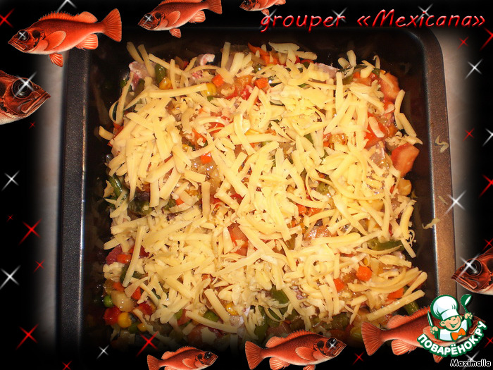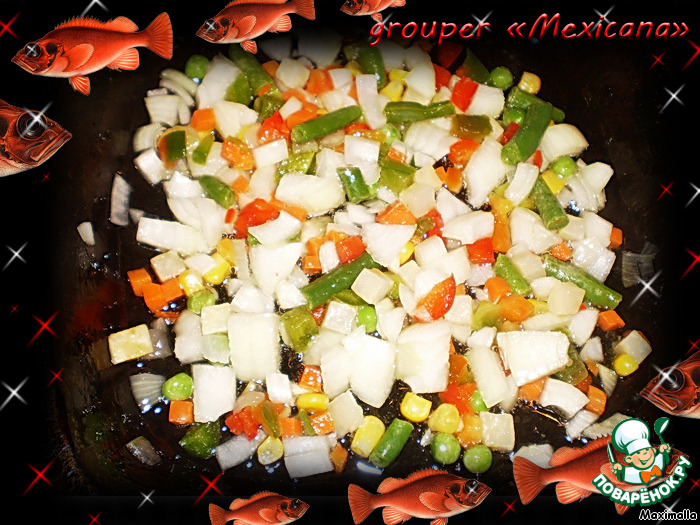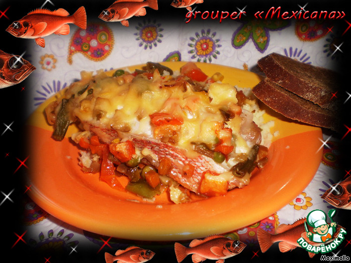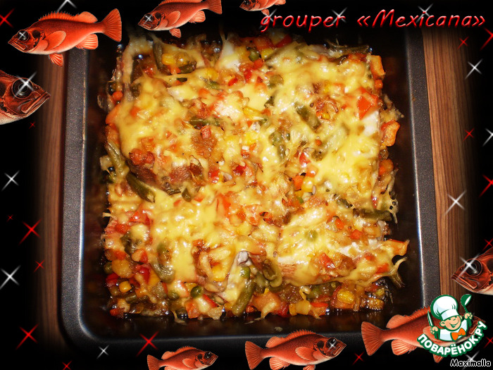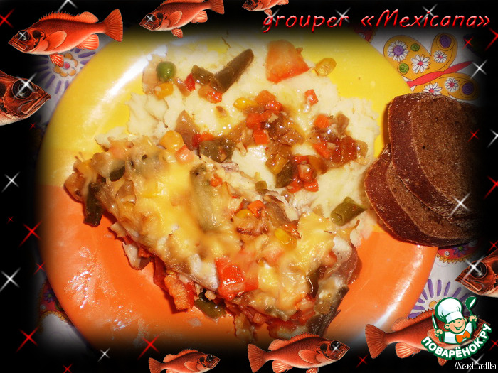 | Grouper «Mexicana». Морской окунь «Мексикана» - запеченная рыба с мексиканским ассорти из овощей и томатами… Множество витаминов, отменный, богатый вкус! Пальчики оближешь! |