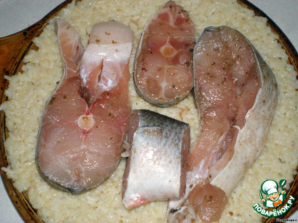 Сверху укладываем рыбу, подготовленную по вкусу.