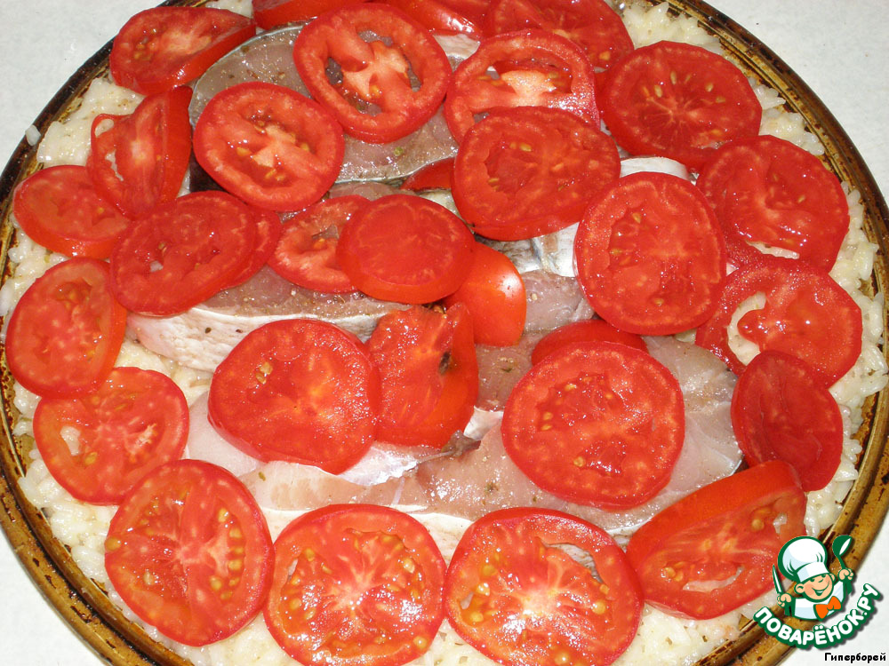 Поверх укладываем нарезанные кружочками помидорчики