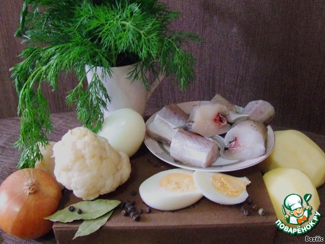 Предварительно отварить цветную капусту в подсоленной воде до полуготовности (можно также приготовить ее в кляре), затем в этом же бульоне до полуготовности отварить картофель.