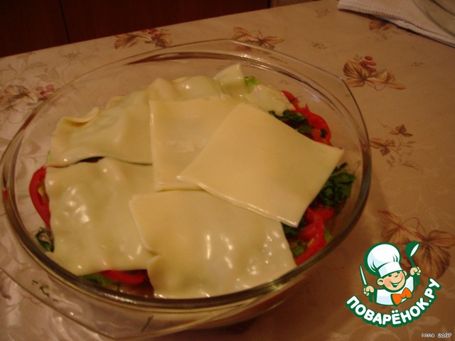 Затем выкладываем пластики сыра на овощи ,ставим опять на 4-5 минут в МВ.