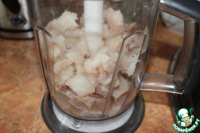 Рыбу измельчите в блендере (или пропустите через мясорубку).