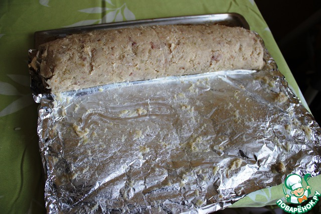 На фольгу, смазанную сливочным маслом, выложите рыбный фарш, разровняйте (толщина - примерно 1 см).