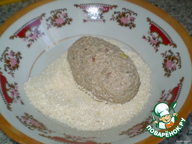Из фарша сформовать небольшие котлетки и обвалять их в обсыпке.