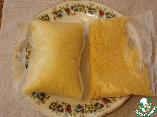 Теперь, когда нам надо покормить свою семью, да и самой подкрепиться, мы сначала ставим воду для пшена в пакетиках от "Мистраль" и варим согласно инструкции на упаковке. Кто-то скажет, что пшено и рыба это как-то, по меньшей мере, странно. Но уверяю Вас, что именно с пшеном эта пикантная рыба сочетается лучше всего. По крайней мере, в нашей семье.