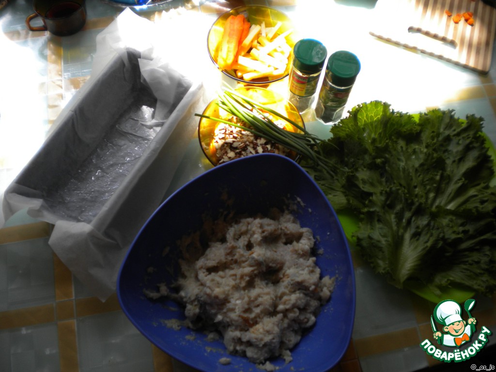 Пока готовила фарш, отварила до полуготовности морковь, т.к. решила положить ее целиком. В оригинале сырая морковь натирается соломкой.