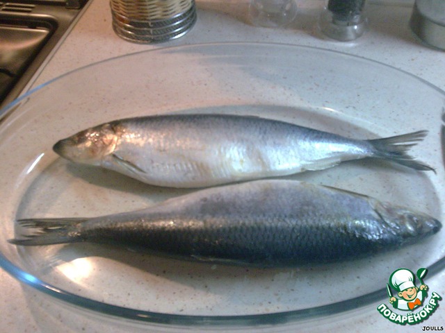 Селедку размораживаем, моем и разделываем на филе, тщательно выбирая все кости.