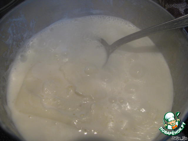 Заливаем сливочно-сырной смесью рыбу с овощами.