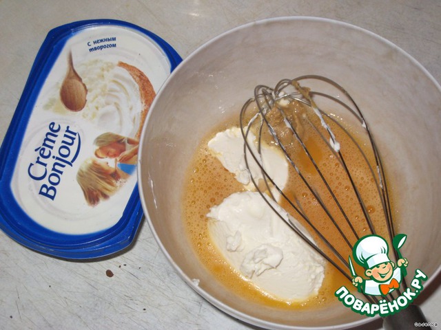 Для суфле яйцо немного взбить с солью, добавить сливочный сыр и горчицу, все перемешать до однородности.