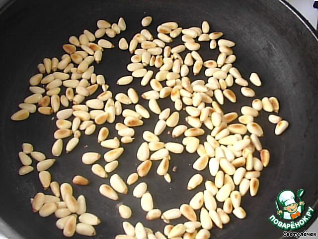 Кедровые орехи слегка обжариваем на сухой сковороде.