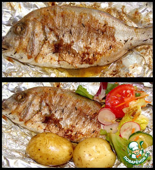 | Блюдо для гриля. Краткая информация о рыбе: Крупный золотистый морской лещ вида Coryphaena hippurus семейства спаровых, обитающий в теплых и умеренных соленых морях по всему миру, в том числе в прибрежных водах Европы, в основном в Средиземном море. Промыслом этих рыб занимаются преимущественно Испания, Франция, Италия и Турция. Кроме того, с недавнего времени дораду успешно разводят на рыбных фермах. Это поистине королевская рыба: у нее плотное, нежное и ароматное мясо – слегка розоватое, с приятным сладковатым вкусом, к тому же костей в ней совсем немного. Дорада считается парадным блюдом практически всех стран Средиземноморья (ее высоко ценили еще древние римляне). |