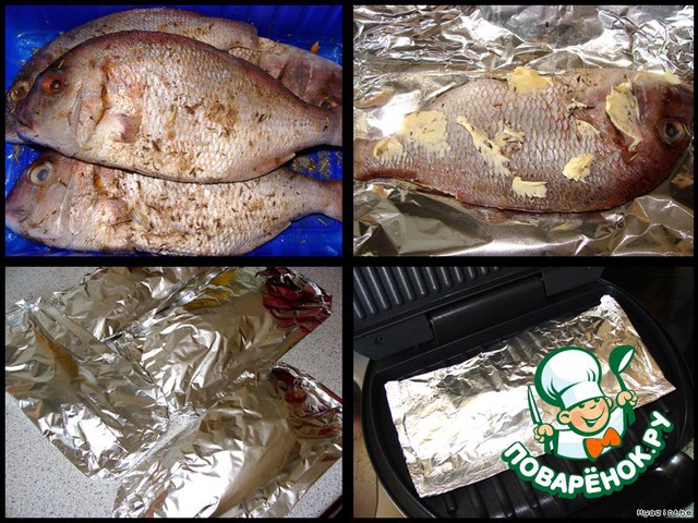 Укладываем на гриль и обжариваем по 5-7 минут с каждой стороны (у меня двусторонний электрогриль, поэтому рыбу не переворачивала, просто запекала 7 минут).