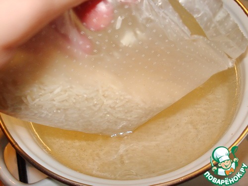 Так легко готовить крупу в пакетике! Каждый пакетик одна порция. Для приготовления риса опускаем пакетик с рисом в кипящую, подсоленную воду, не открывая его. Варим на медленном огне 15 минут.