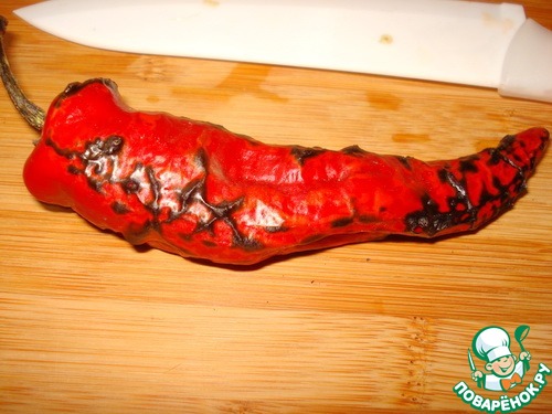Перчик чили очищаем от кожицы и семян. Здесь вы можете регулировать остроту, положить меньше перчика или наоборот если вы любитель "погоречее", смело добавляйте больше.