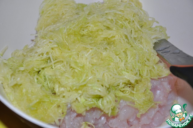 Филе мелко порезать (можно все пропустить через мясорубку и дело с концом:) это кто как больше любит, но я предлагаю такой вариант).
