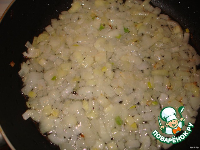 Замочить в молоке (или воде) белый хлеб. Лук нарезать и спассеровать на растительном масле.
