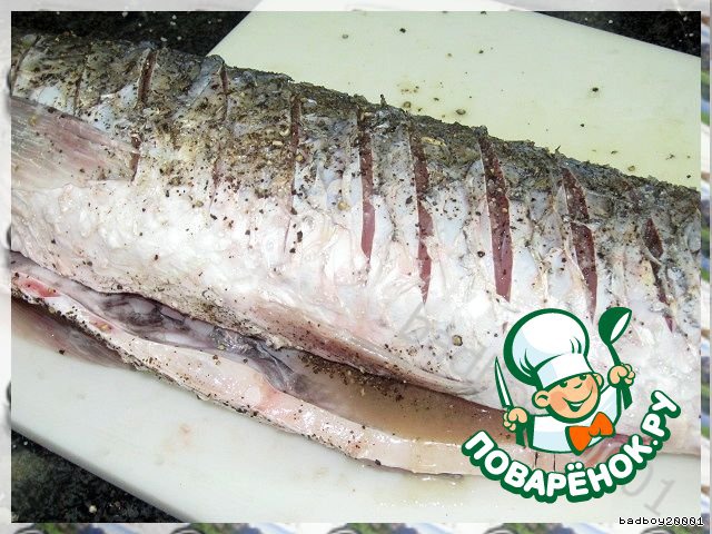 сделать косые надрезы , посолить, поперчить и сбрызнуть лимонным соком