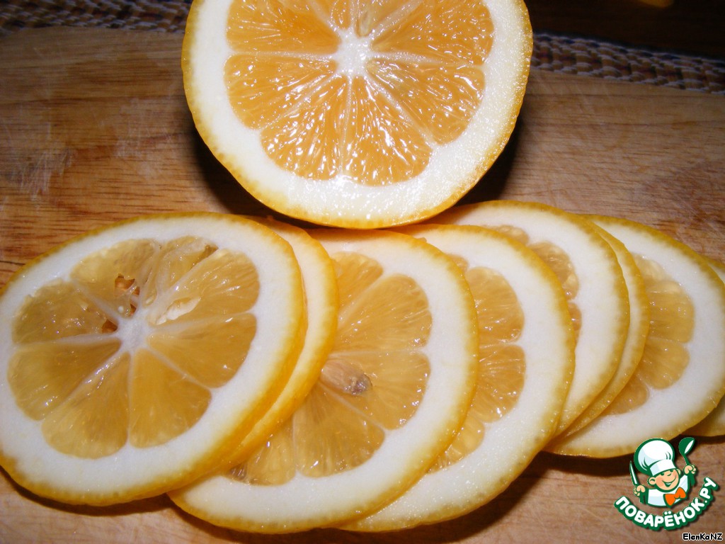 Поливаем соком лимона и посыпаем укропом. Сверху кладем ломтики лимона и каперсы.