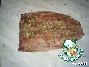 Рыбу помыть, почистить от внутренностей, удалить хребет и косточки и равномерно натереть специями
