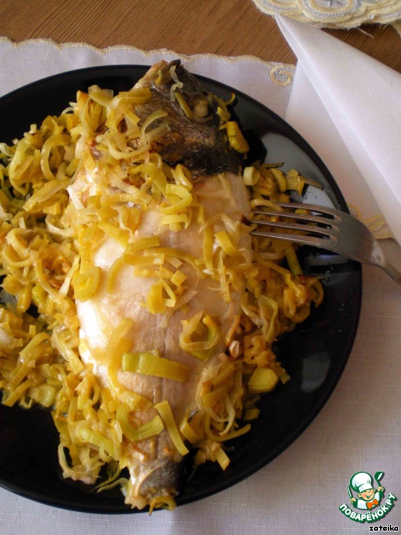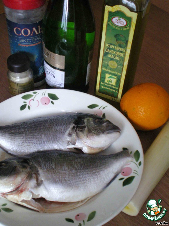 В этот раз я готовила дораду, однако, так можно приготовить и другую малокостную нежирную рыбу с плотным белым мясом. Рыбки у меня небольшие – 2 непотрошенные едва потянули до 1 кг. Стебель порея - на 150г. Масло можно взять любое растительное, но лучше, все-таки, оливковое.