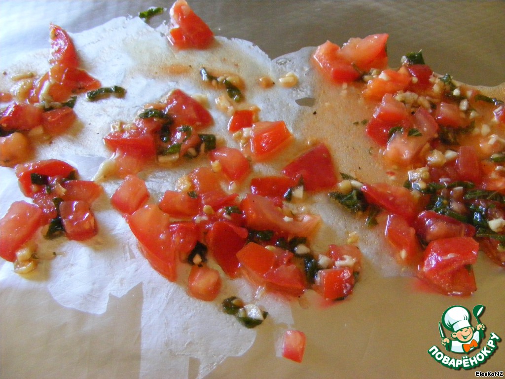Часть томатной смеси выкладываем на приготовленную фольгу.