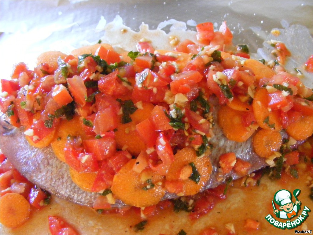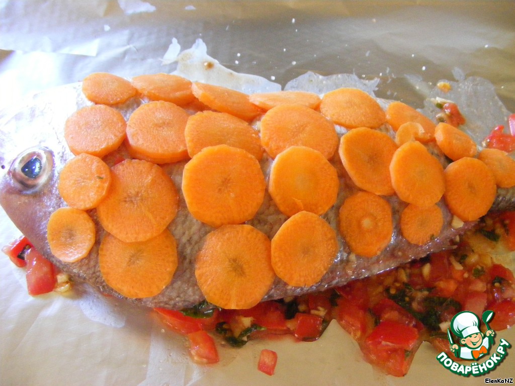 Сверху выкладываем рыбу, на рыбу - морковь.