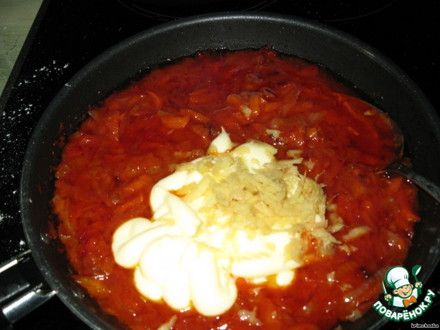 Добавить сметану, тертый имбирь. Довести до кипения.