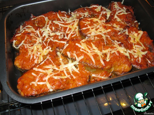 Обжаренную рыбу выложить в форму для запекания. Полить маринадом и поставить в разогретую до 180-200*С духовку на 20 минут.