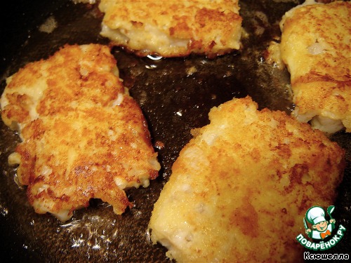 Жарим на разогретом масле с двух сторон по 3-4 минуты до образования хрустящей золотистой корочки.