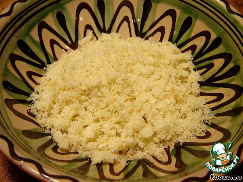 Приготовим хлебные крошки из белого черствого хлеба (можно и из свежего).