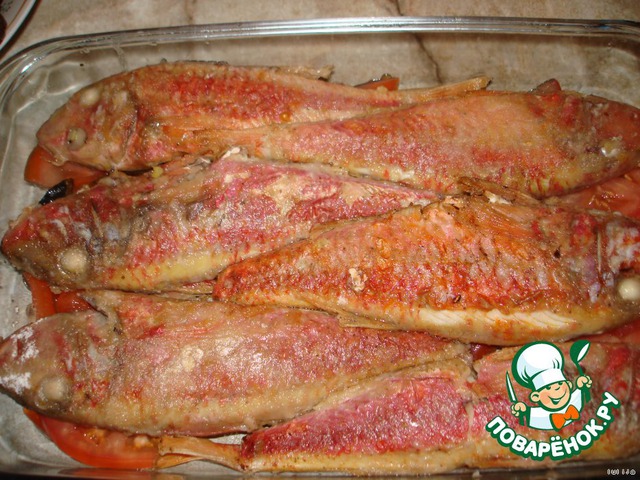 Барабулька, запеченная с грибами
