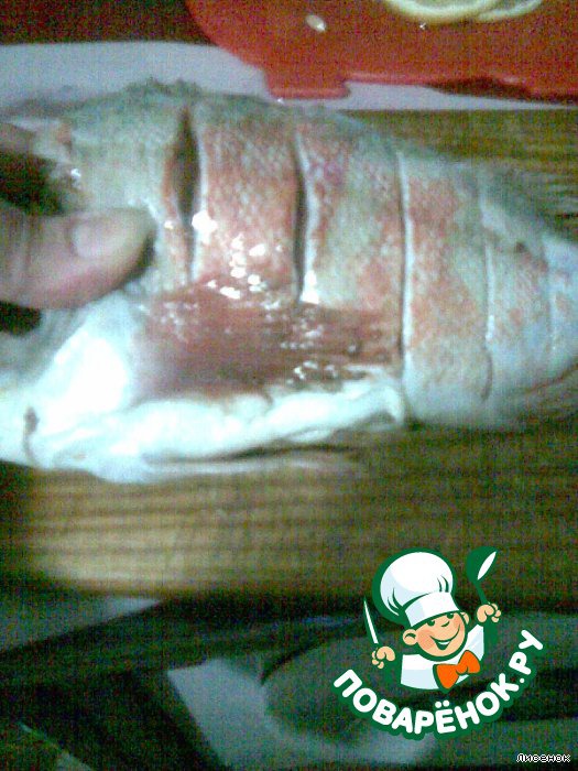 Рыбу почистить,выпотрошить,удалить голову.По бокам сделать надрезы