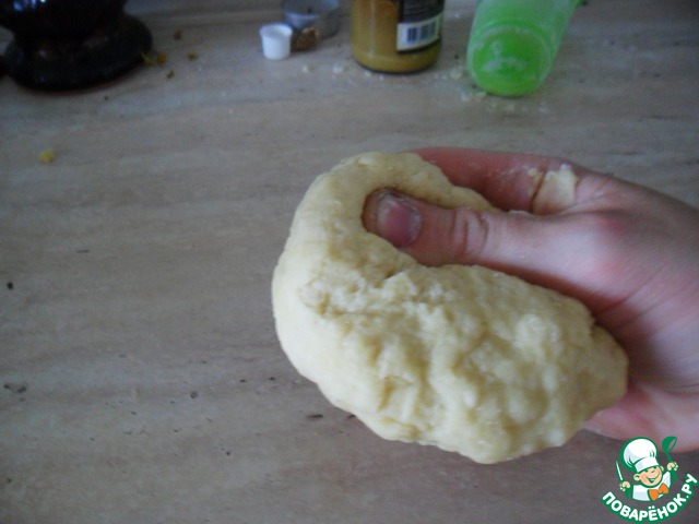 Вымесить все в тугой шарик, тесто должно получиться пластичным - я корректирую количество муки, его всегда сложно назвать точно!