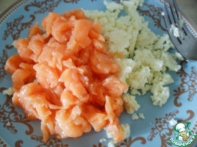 | Меня просто покорило сочетание адыгейского сыра и семги! Очень советую попробовать - отличный ужин для всей семьи! эти конвертики из теста получились очень сочными и нежными, а если готовите с расчетом на деток, то откажитесь от перца чили. |