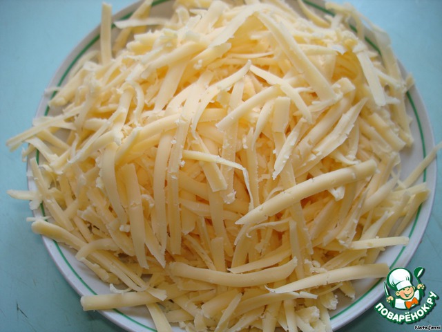 Вынуть форму из духовки, посыпать сыром, поставить еще на 5 минут...
