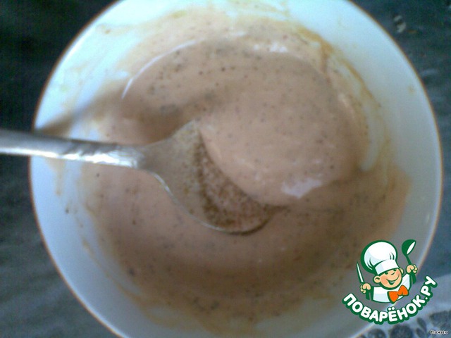 пока размораживается рыба, приготовила соус: смешала все ингредиенты (1-6, 8)