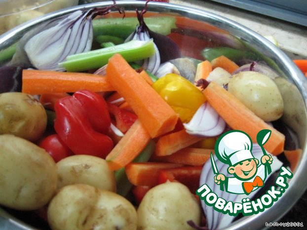 остальные овощи полить добавочно маслом и посолить, накрыть фольгой. Поставить в духовку на 30-35 минут.