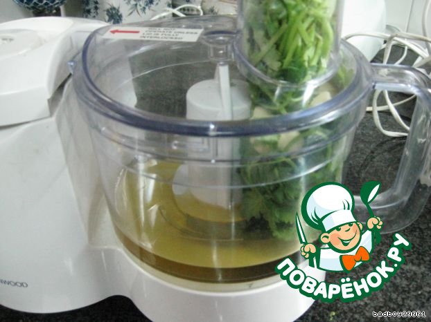 горький перчик, 5-6 зубчиков чеснока, сок и цедра одного лимона, зелень кинзы, петрушки, укропа смешать.