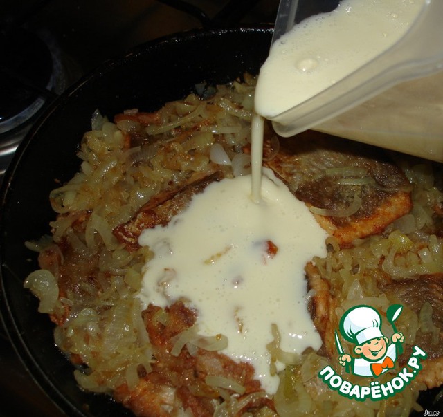 | Обжаренные кусочки лосося, запеченные с яйцом и майонезом |