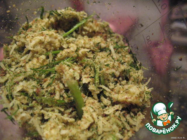 Крошки, укроп и петрушку прокрутила в блендере.