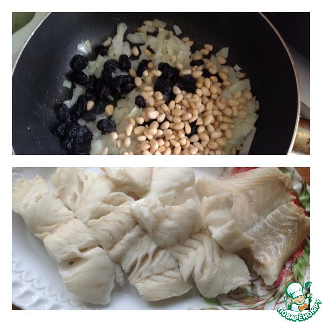 | Отварное филе трески с морской капустой, изюмом и кедровыми орехами. Хочу познакомить Вас с еще одним вариантом приготовления трески. Это блюдо получается и вкусным и полезным. Казалось бы такие разные ингредиенты, но вместе они играют ароматную и очень вкусную симфонию. |