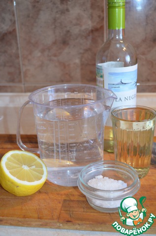 Залить овощи 1 литром холодной воды, стаканом белого вина (у меня - граненый стакан 250мл)